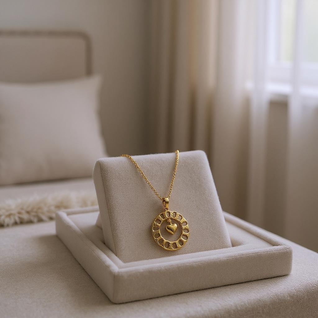 This Gold-Plated Heart Pendant Necklace featuring a delicate green gemstone at the center and three dangling teardrop charms. Crafted with precision, this necklace combines a romantic heart shape with a modern drop design, making it perfect for parties, festive occasions, office wear, and daily styling.The lightweight design ensures all-day comfort, while the premium gold plating gives a luxurious shine that resists tarnish. This necklace pairs beautifully with both traditional and western outfits, making it a versatile addition to your jewelry collection.