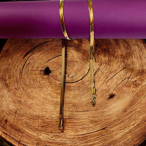 Enhance your jewelry collection with this Gold-Tone Snake Chain Necklace (22 Inches). The elegant snake design drapes smoothly and adds a sophisticated touch to any outfit. With its longer 22-inch length, it is perfect for layering with shorter chains or wearing solo for a sleek statement look. Crafted with premium gold-tone plating, this necklace is lightweight yet durable, making it comfortable for all-day wear. A versatile piece that transitions effortlessly from daily wear to festive occasions.